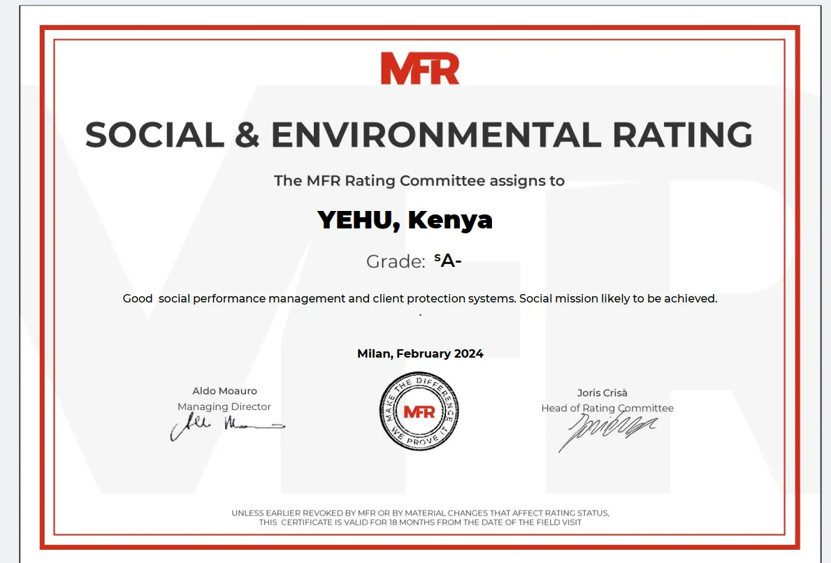 Yehu in the Miji Kenda dialect means ours, a true conviction of the founder, Dr Rita Lugogo, that Yehu should be owned by the common people. Such ownership is testimony that sustainable socio-economic transformation is real to the marginalized rural poor if given suitable opportunities to access financial services tailored to their needs.